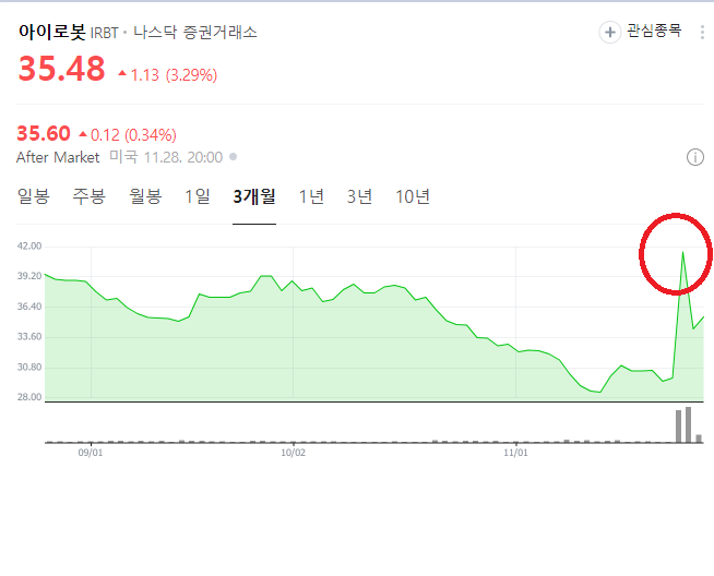 이로 인해 EU집행위의 심사를 넘기 까다로울 것이라는 시각이 커졌던 것입니다. 때문에 조사 결과 발표기한이 내년 2월 14일로 다가왔음에도 불구하고 iRobot 중가가 크게 반등하지 못했던 것이지요.
