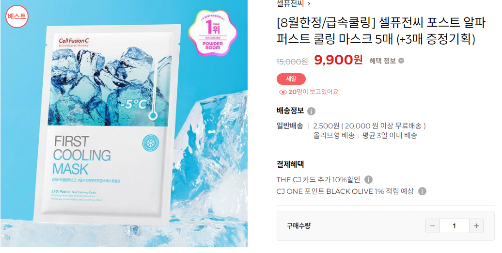 1. 셀퓨전씨 포스트 알파 퍼스트 쿨링 마스크 5매