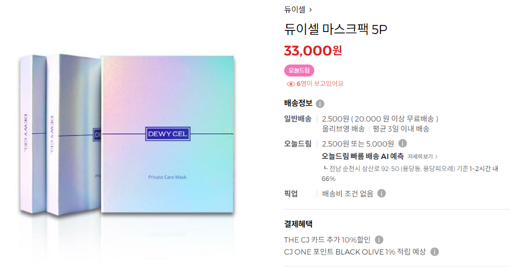 * 쿠팡에서 듀이셀 프라이빗 케어 마스크팩 5매, 2세트 -> 27,400원에 판매중